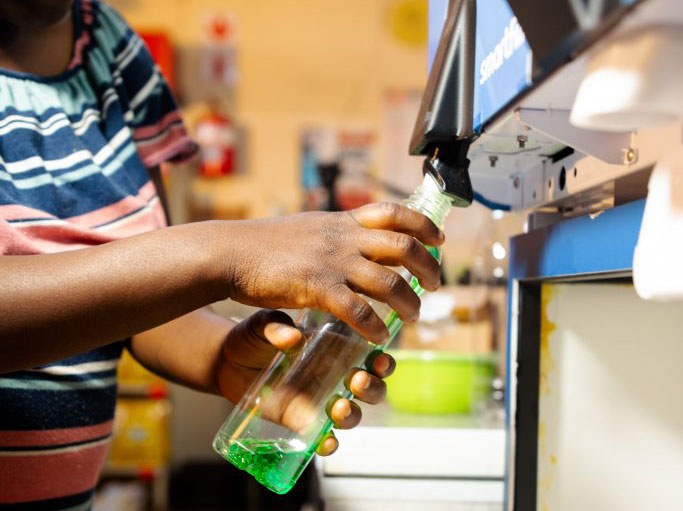 Smartfill’s refill dispensers in South Africa’s township shops allow customers to buy essentials in precise amounts at prices up to 50% lower than major supermarkets. The system targets the informal sector, a significant channel for the country’s FMCG sector. Smartfill aims to work with the spaza shops rather than compete against them.[Image Credit: © Smartfill]